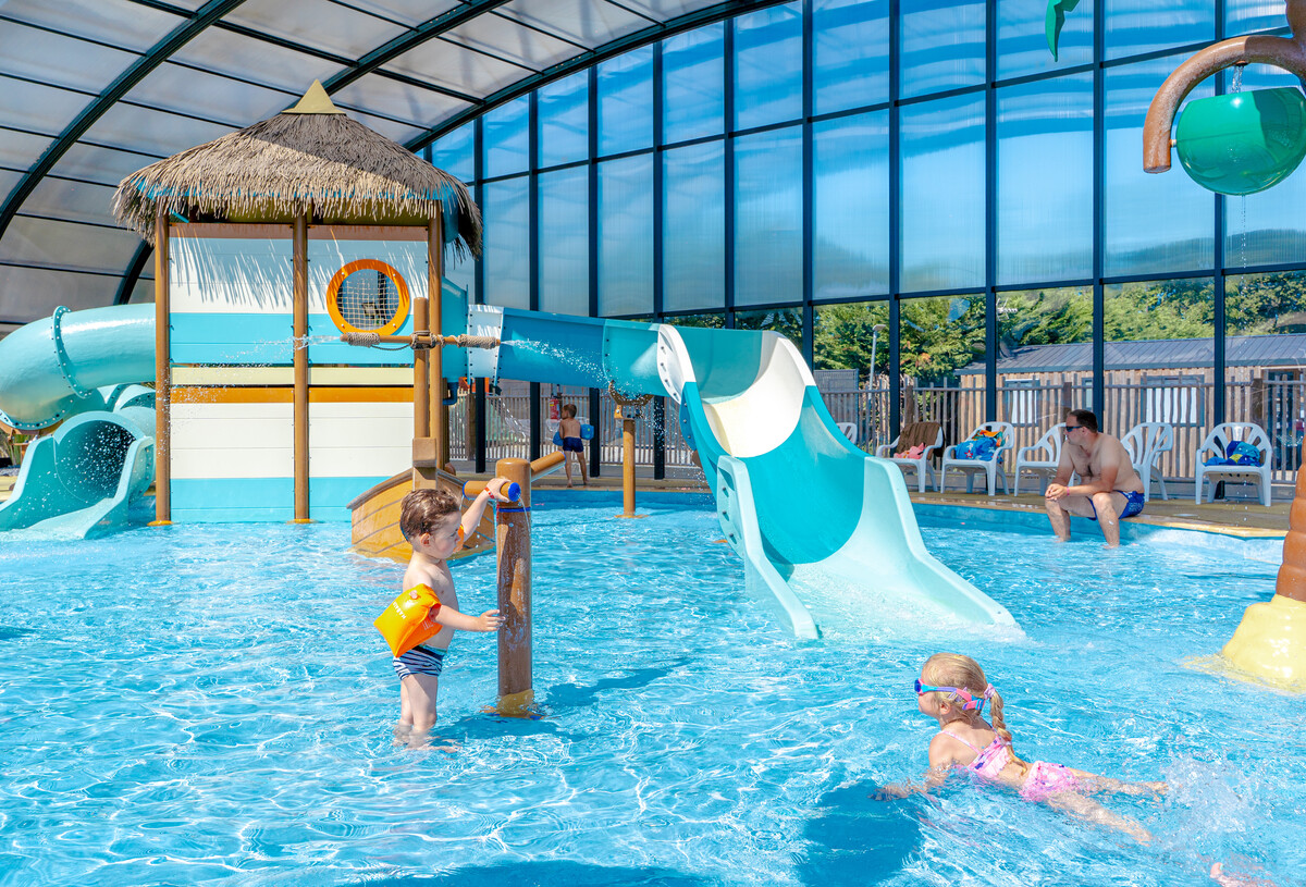 Nuestra piscina cubierta estará climatizada desde la apertura hasta el cierre del camping- Tobogán acuático