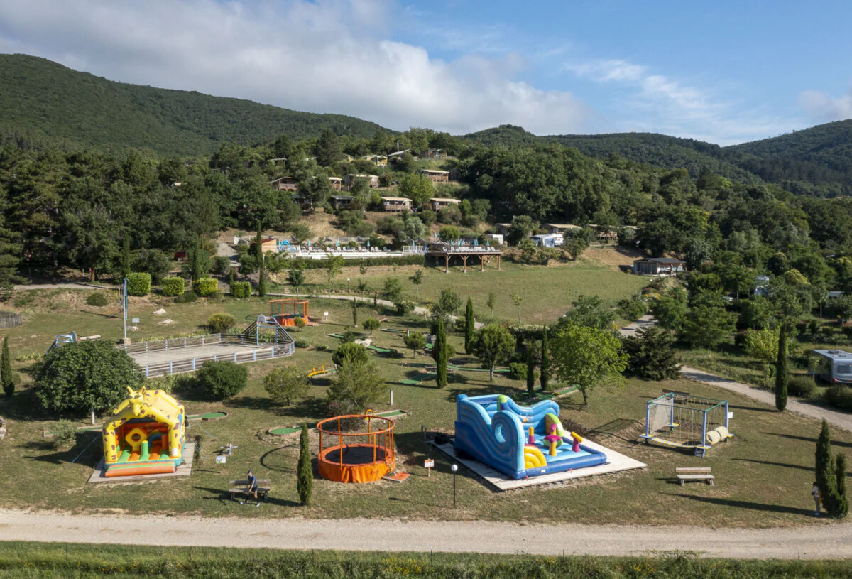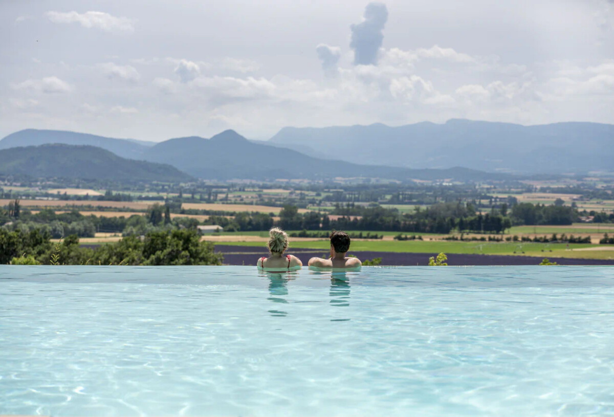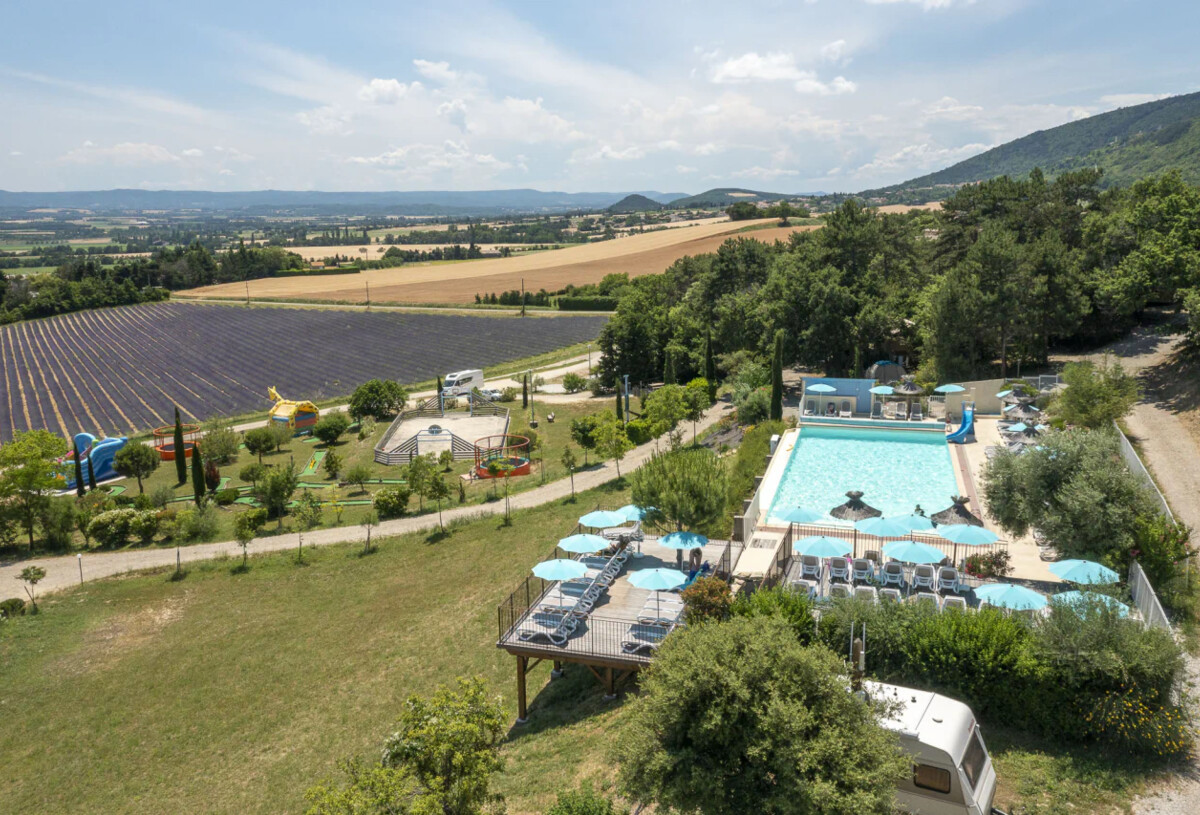 Relájese junto a nuestra piscina infinita con vistas panorámicas al valle, ideal después de un día de exploración. El camping es el punto de partida perfecto para explorar la Drôme: pueblos protegidos como Mirmande, Grignan o Le Poët-Laval, paisajes de lavanda, mercados provenzales y tesoros naturales como el Vercors o el bosque de Saou