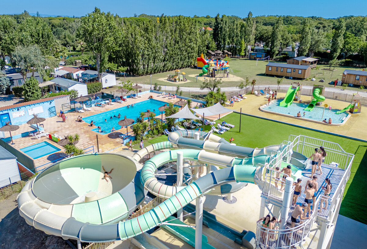 Parque acuático con piscina exterior, piscina infantil y toboganes para los más pequeños. ¡Y para los mayores, toboganes de sensaciones fuertes! Disfrute de las hamacas tomando el sol mientras vigila a sus hijos jugando en la piscina infantil.