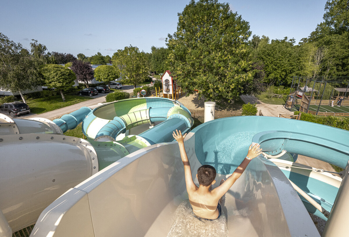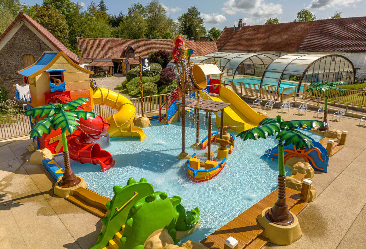 El parque acuático del camping La Ferme des Aulnes le da la bienvenida para disfrutar de momentos en familia. Apreciará la piscina cubierta y climatizada con cúpula retráctil para los días soleados, así como la nueva piscina infantil lúdica y sus toboganes Spacebowl y Double Slide.