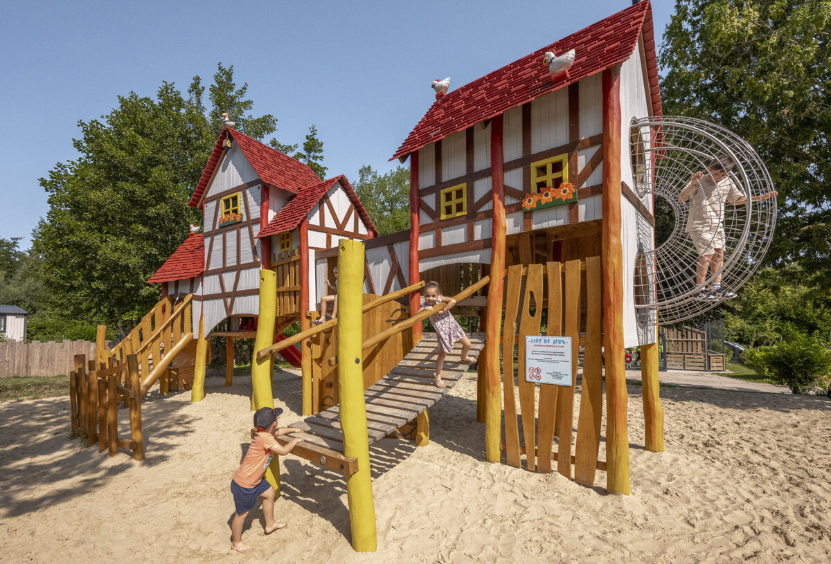 Sí, el camping La Ferme des Aulnes dispone de un parque infantil con estructuras hinchables. Más información