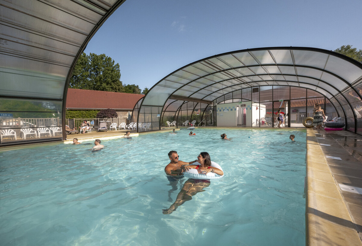 Sí, el camping La Ferme des Aulnes dispone de una piscina cubierta climatizada con cúpula retráctil y una piscina infantil. Más información