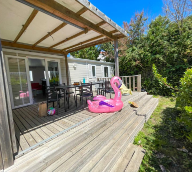 El camping Le Brandais le da la bienvenida a Brem-Sur-Mer, una encantadora ciudad costera en Vendée. A solo 800 metros de la playa, 300 metros del centro de la ciudad, a 15 km de la estación de tren y del centro de la ciudad de Les Sables d'Olonne, este camping cercano a Brétignolles sur mer te seducirá. Situado en la costa y a 5 minutos de Brétignolles-sur-Mer, su ubicación es ideal. ¡Disfruta de las largas playas de arena cerca del camping! Al alojarte en Le Brandais, disfruta de diferentes tipos de mobil homes equipados para toda la familia. Desde la apertura del camping hasta septiembre, un gran espacio acuático está a tu disposición para disfrutar de momentos únicos en familia: una piscina exterior climatizada, una piscina cubierta climatizada, una zona de juegos acuáticos para tus hijos y toboganes para disfrutar aún más. Para comer: bar, platos para llevar y una tienda de comestibles de emergencia. Para tu comodidad: WiFi (gratuito en el bar durante 30 minutos al día y de pago en los alojamientos), lavandería, alquiler de bicicletas y posibilidad de alquilar barbacoas. ¿No es ideal? Para tus hijos: estructuras hinchables para su mayor alegría. En julio y agosto, el club infantil está abierto para niños de 4 a 12 años. Para los más mayores, se ofrecen actividades deportivas (torneos deportivos y clases de acondicionamiento físico de todo tipo) durante el verano. Por la noche, disfruta de las fiestas organizadas por el camping.