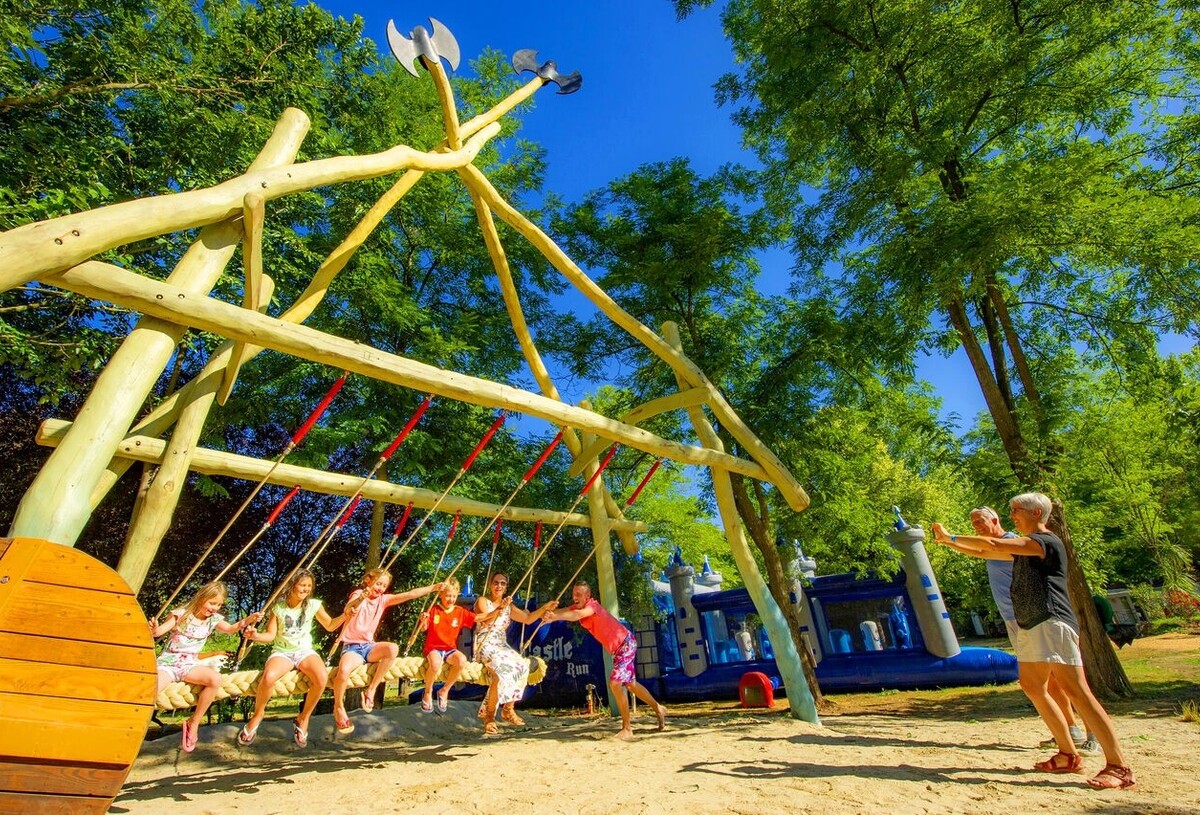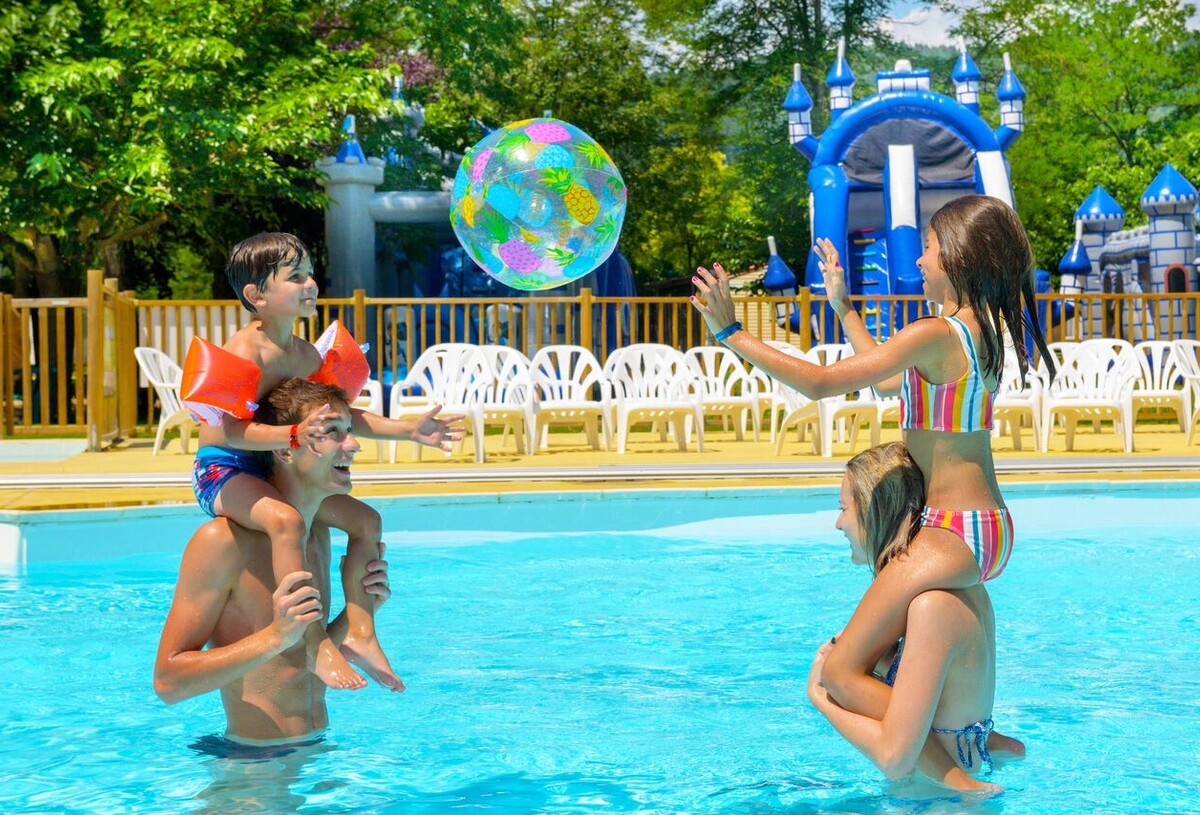 El camping dispone de dos zonas de agua: una piscina exterior con piscina infantil y una zona interior con toboganes Double Slide y Spacebowl para divertirse en familia.