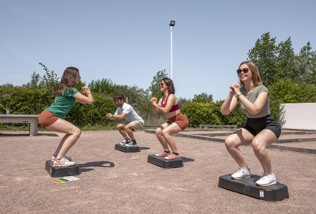 Sí, el camping dispone de un parque infantil y un mini parque de aventuras en las copas de los árboles.
