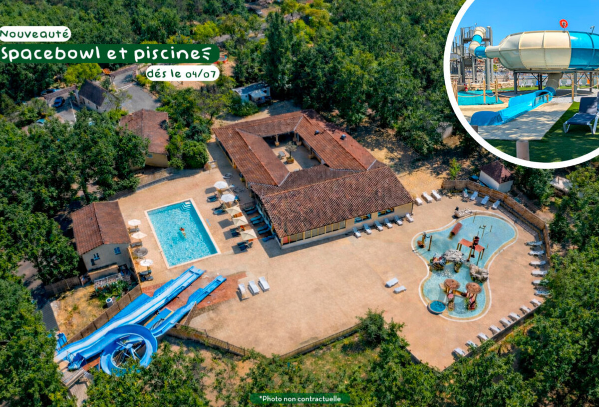 Descubra nuestro espacio acuático con piscina exterior climatizada, piscina cubierta climatizada y piscina infantil no climatizada para los más pequeños. La zona acuática también está equipada con un tobogán multipista. ¡Un lugar ideal para toda la familia!