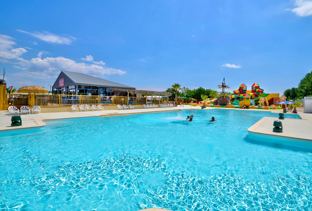 Para unas vacaciones sinónimo de relax y ocio, acércate al camping Palmira Beach y su espacio lúdico acuático. Bajo el sol del sur de Francia, en familia, con amigos o en pareja, dé paso a la diversión y las risas en la piscina exterior climatizada y la piscina infantil. Toma el sol mientras los más pequeños se divierten en el barco pirata y los toboganes: un espacio acuático apto para todas las actividades en familia. También está disponible un solárium para obtener una bonita tez dorada de verano.